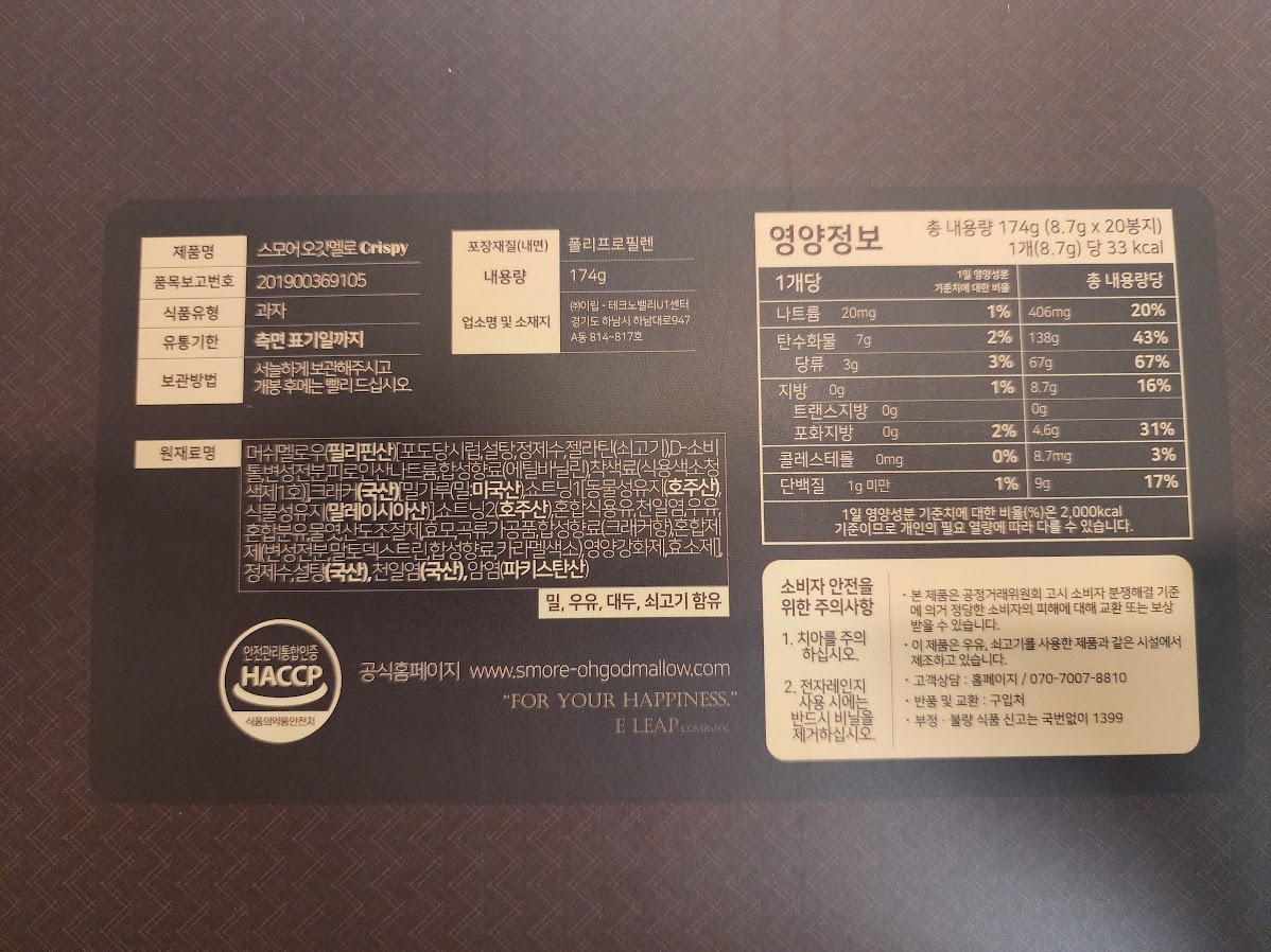 스모어 오갓멜로 크리스피입니다.