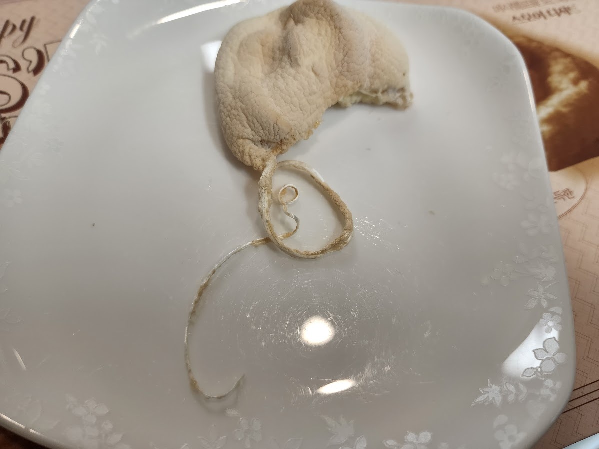 꺼내자마자 숨이 죽어 처음보다 더 납작해졌어요.