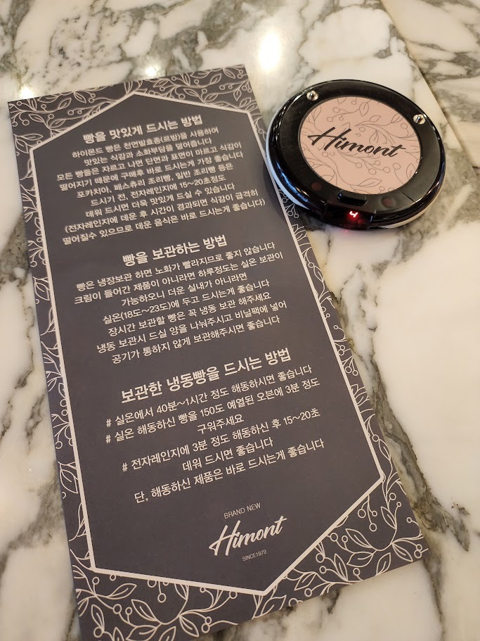 진동벨을 기다리며 집에 갈 때 빵을 사 가려고 빵 안내를 미리 정독합니다.