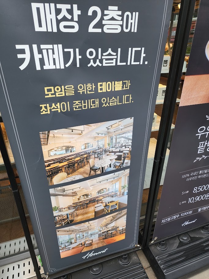 가게는 1 층과 2 층으로 1 층은 베이커리, 2 층은 카페입니다.