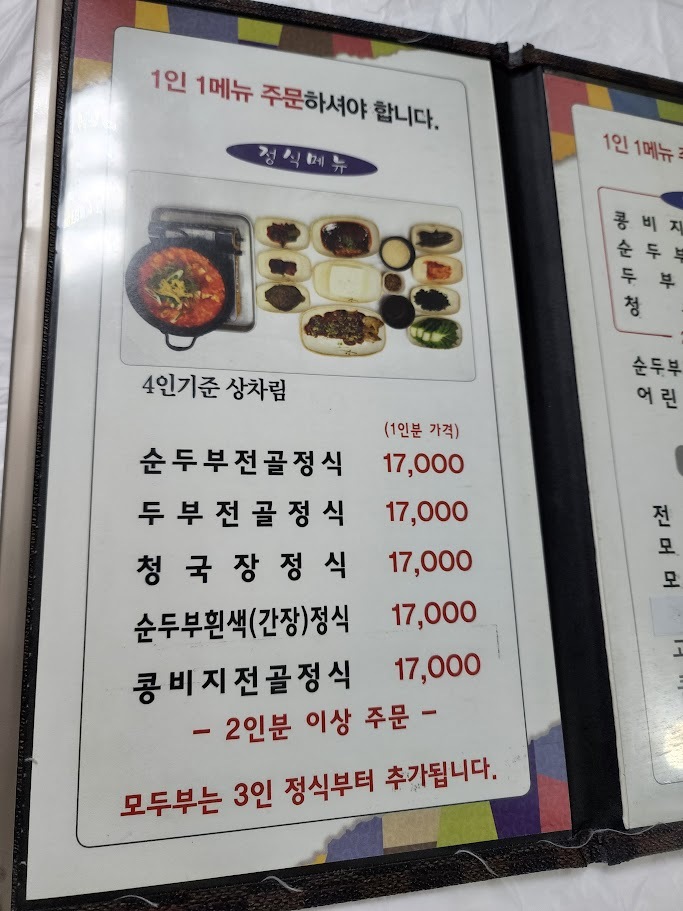 저희는 순두부전골 정식 4 인을 주문했습니다.