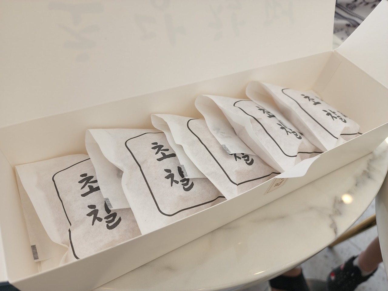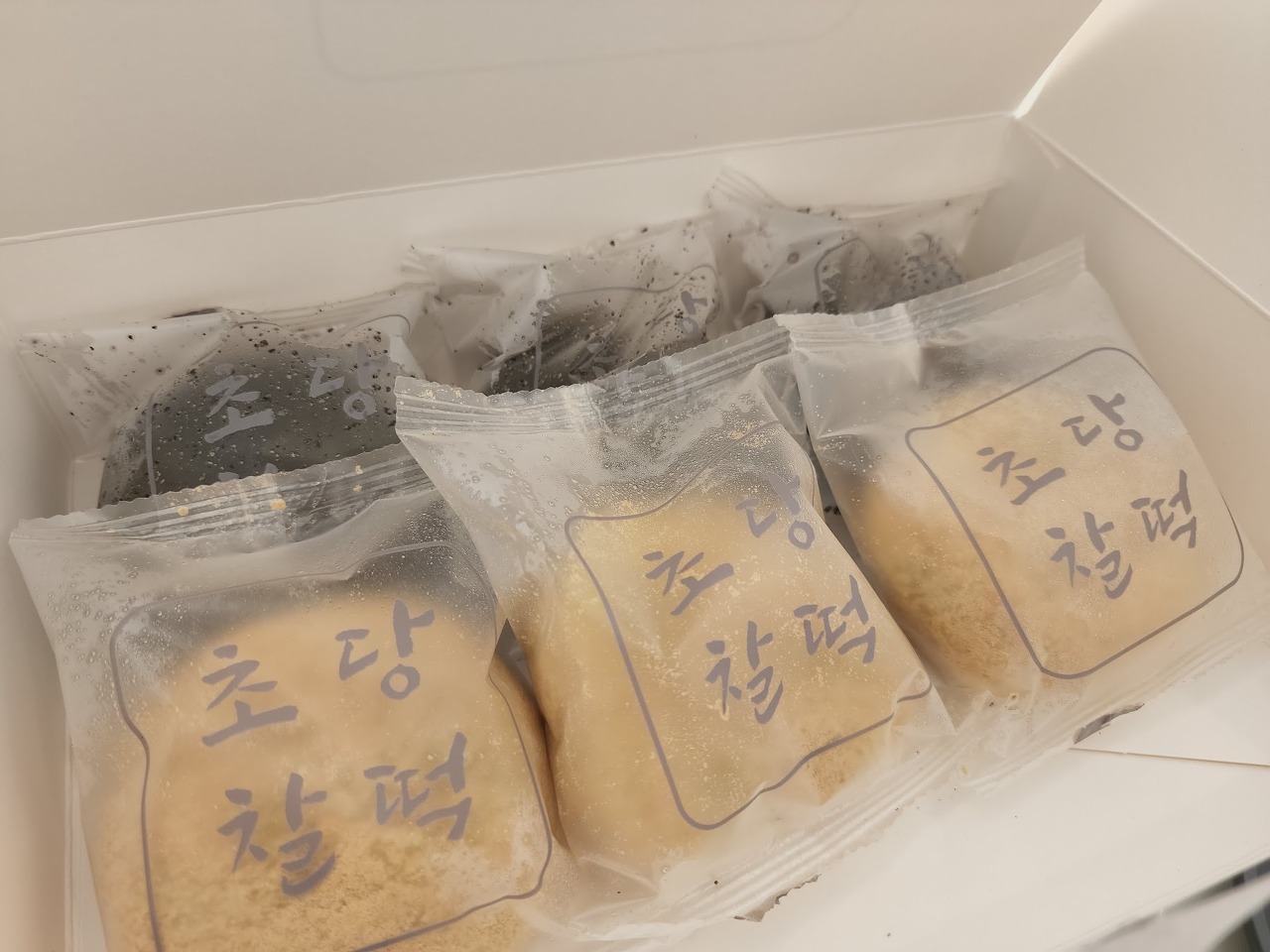 아까 구운찰떡, 초당찰떡 한 개씩 주문했죠.