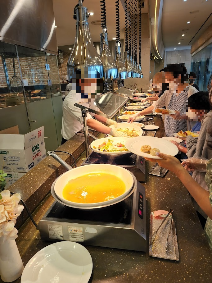 그래도 홍천 비발디파크 조식 뷔페처럼 줄이 어마어마하지는 않습니다.