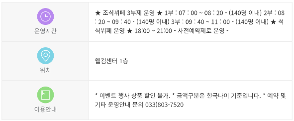 비발디파크의 조식 뷔페와 비교하면 당연히 비발디파크가 음식 종류가 많습니다.