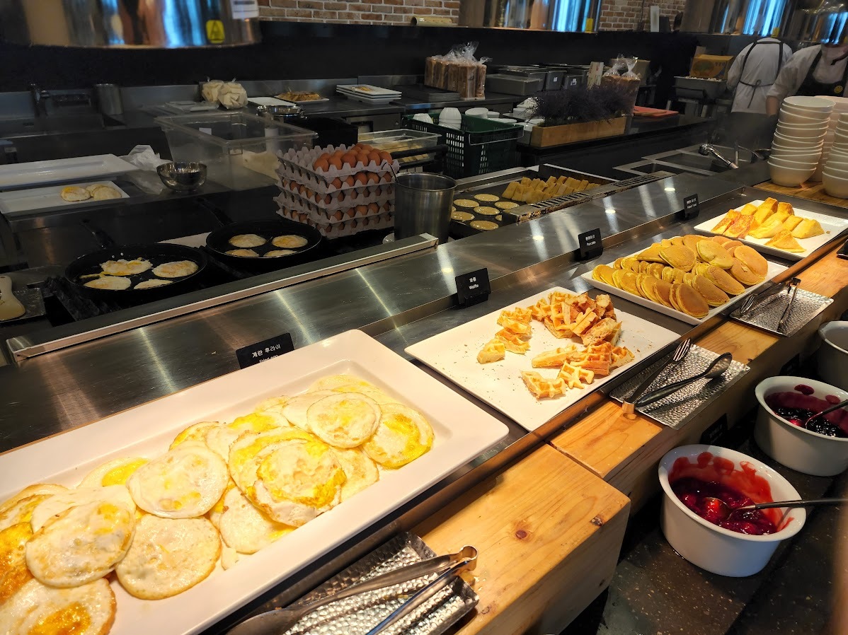 조식 뷔페라 당연하게도 계란 후라이도 있고 팬케이크도 있고 와플도 있고 프렌치토스트도 있습니다.