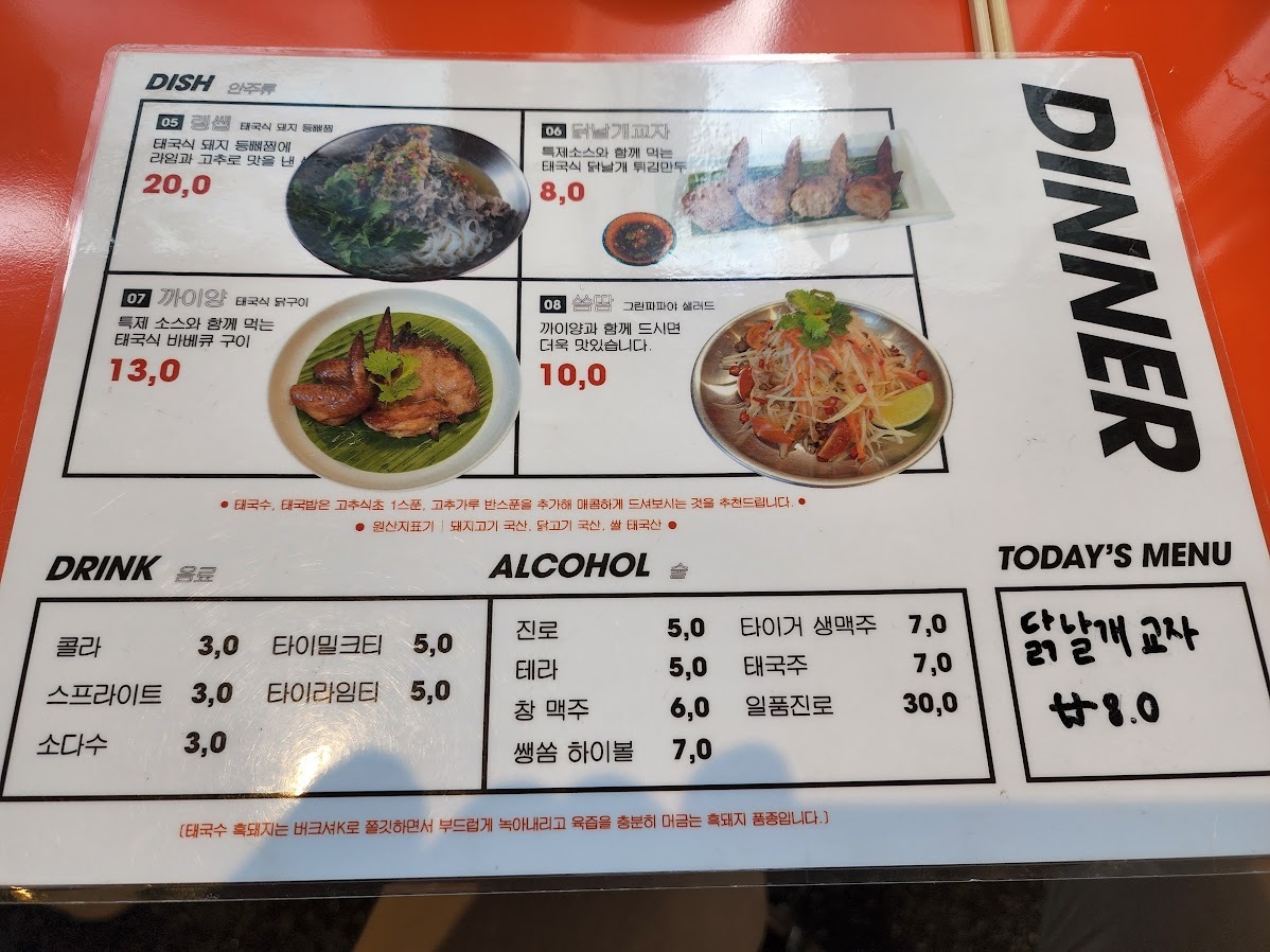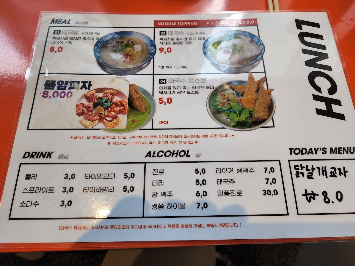 오늘의 메뉴가 닭날개 교자인데 가격이 같네요.