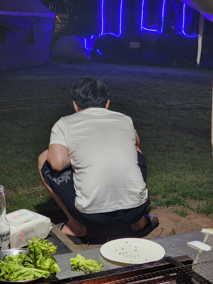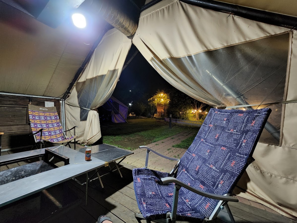 다른 텐트로 이동해 야경과 수다를 즐기다 잠을 자러 들어갑니다.