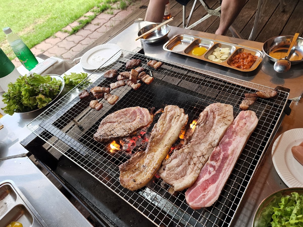 저는 직화로도 삼겹살을 잘 굽습니다.
