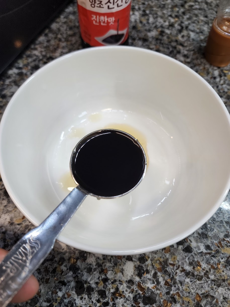맛간장 한 큰 술을 넣고 잘 섞습니다.