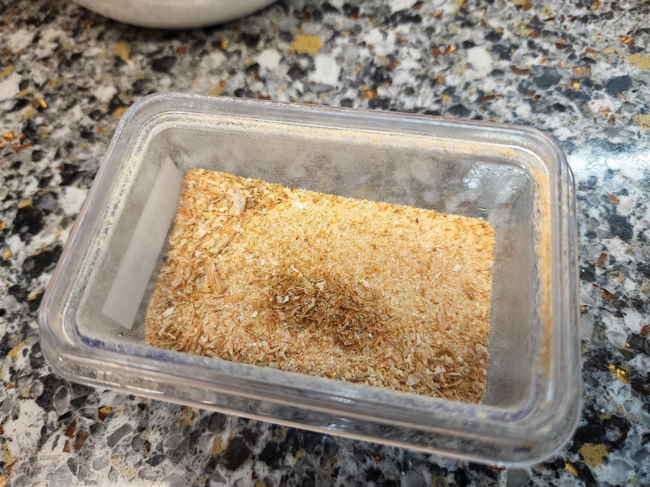 새우가루는 따로 통에 담아 냉동실에 보관합니다.