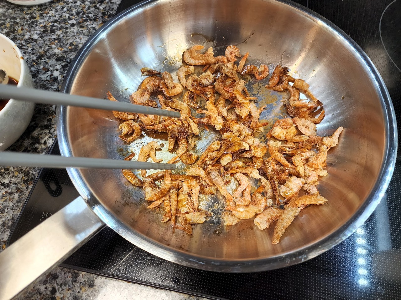 열기로 양념이 새우에 잘 스며들도록 잘 볶습니다.