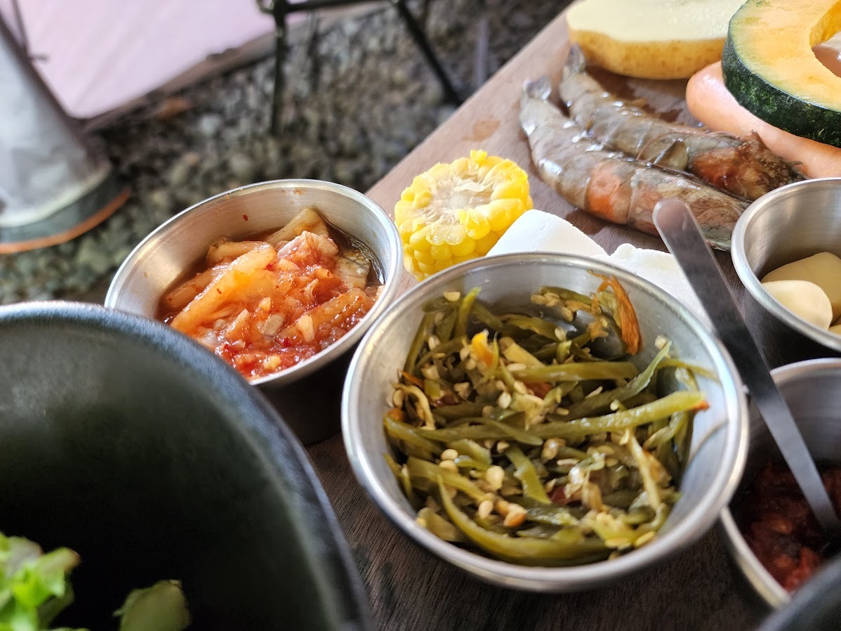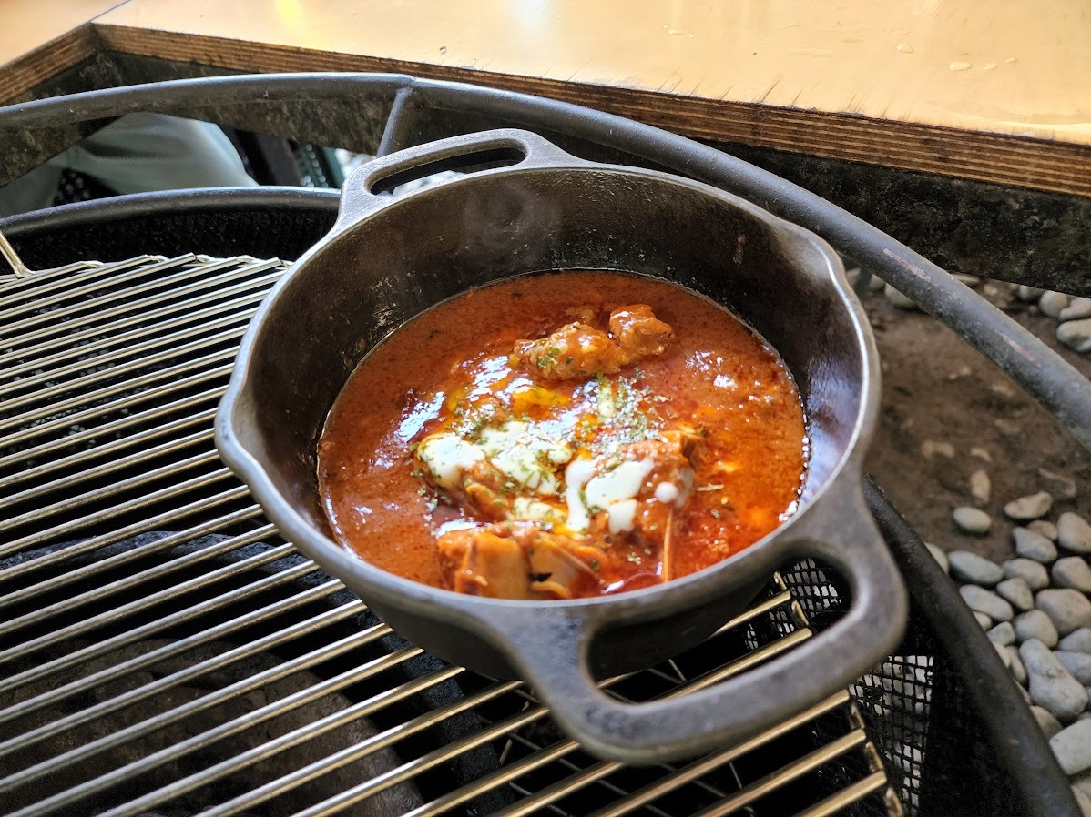 화로에 숯이 올라가고 토마토 스튜가 나왔습니다.