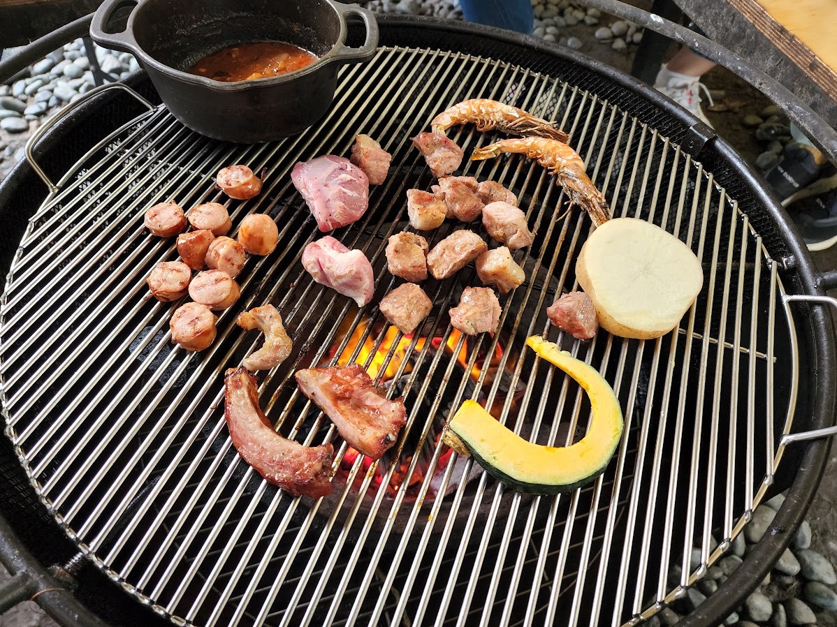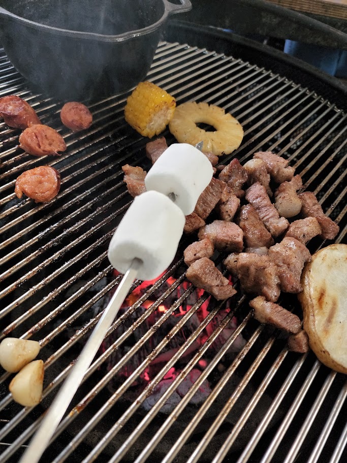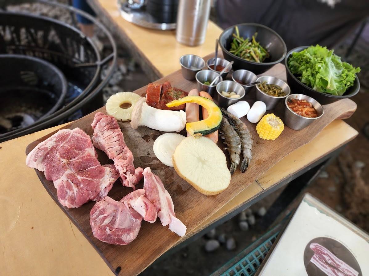 더위와 싸우며 애들은 그나마 시원한 자리로 옮겨주고 제가 제일 더운 자리에 앉아 고기를 굽습니다.