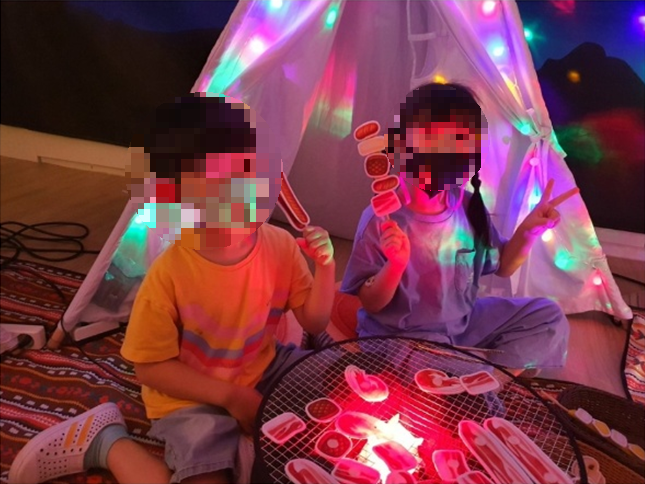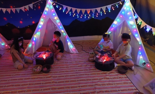 그때는 별 말 없다가 유치원에서 글램핑 체험이라는 걸 했답니다.