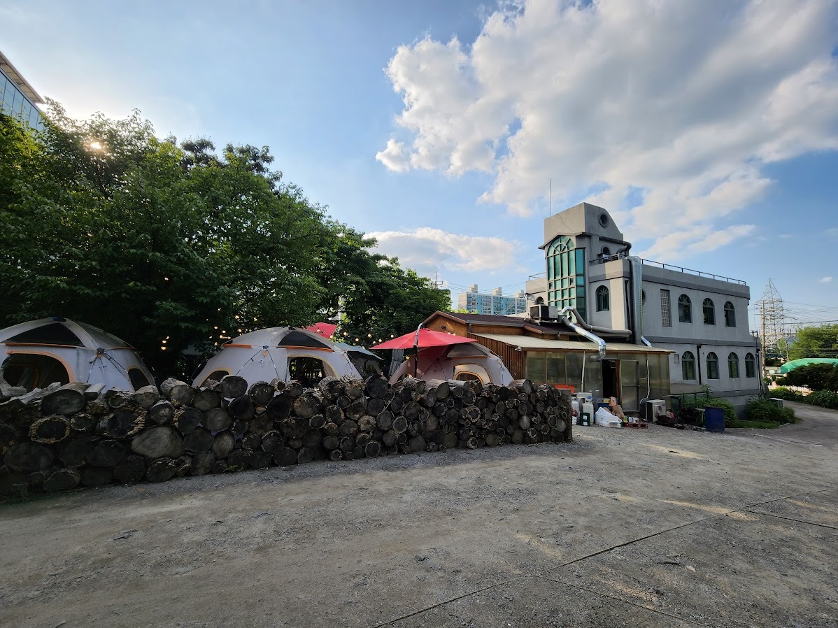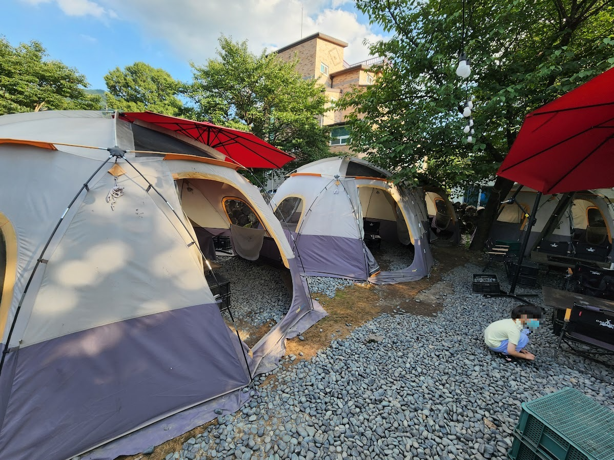 아휴 많이 더우시죠~ 다음에는 텐트 말고 야외석에 앉으세요~
