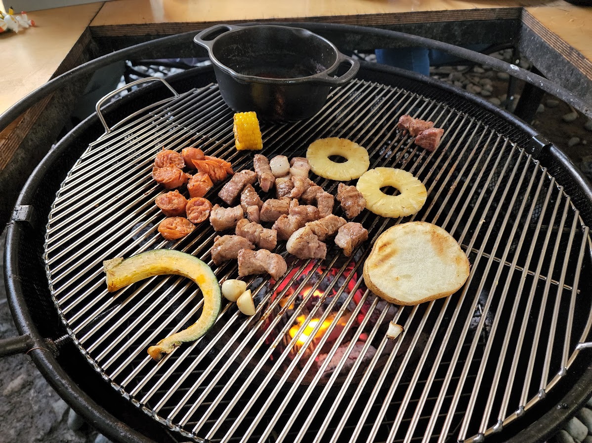 고기를 추가하려면 숯을 더 넣어야 할 것 같아서 말이죠.