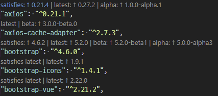 현재 버전과 satisfies 또는 latest 버전이 다르다면 버전을 클릭하여 package.json 파일을 바로 수정할 수 있습니다.