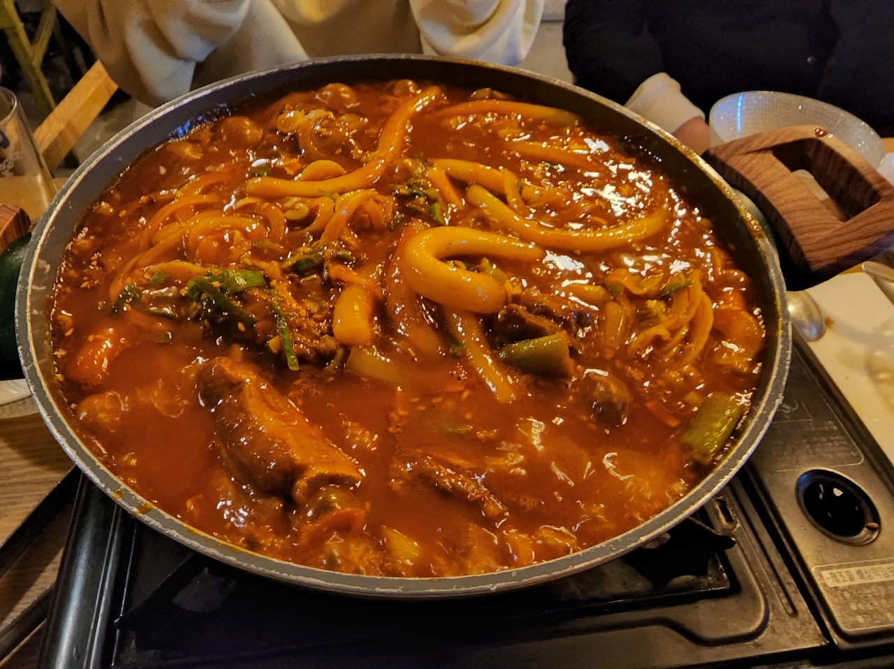 저거 떡볶이와 갈비 두 개가 섞인 음식인데 진짜 맛있더라고요.