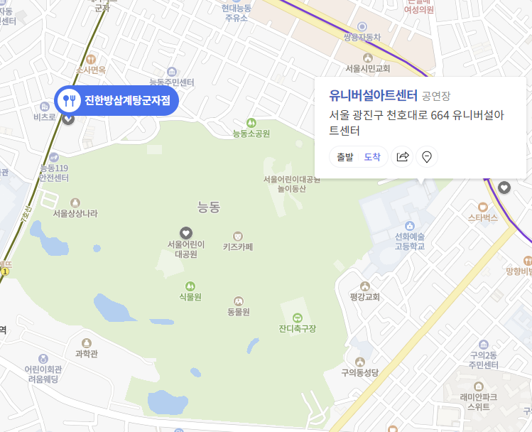 어린이대공원에 있는 상상나라라는 키즈카페 비슷한 곳에 가기로 했으므로 근처에서 밥을 먹어야 합니다.
