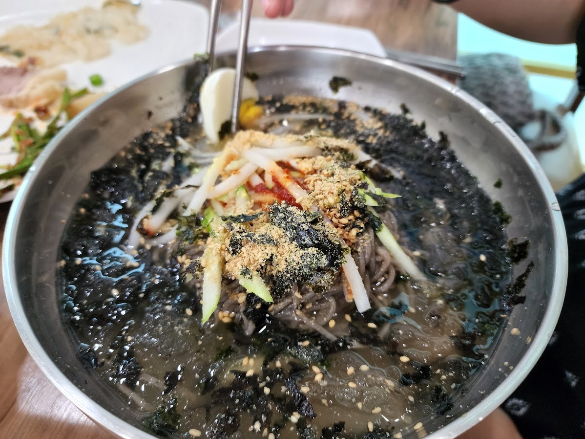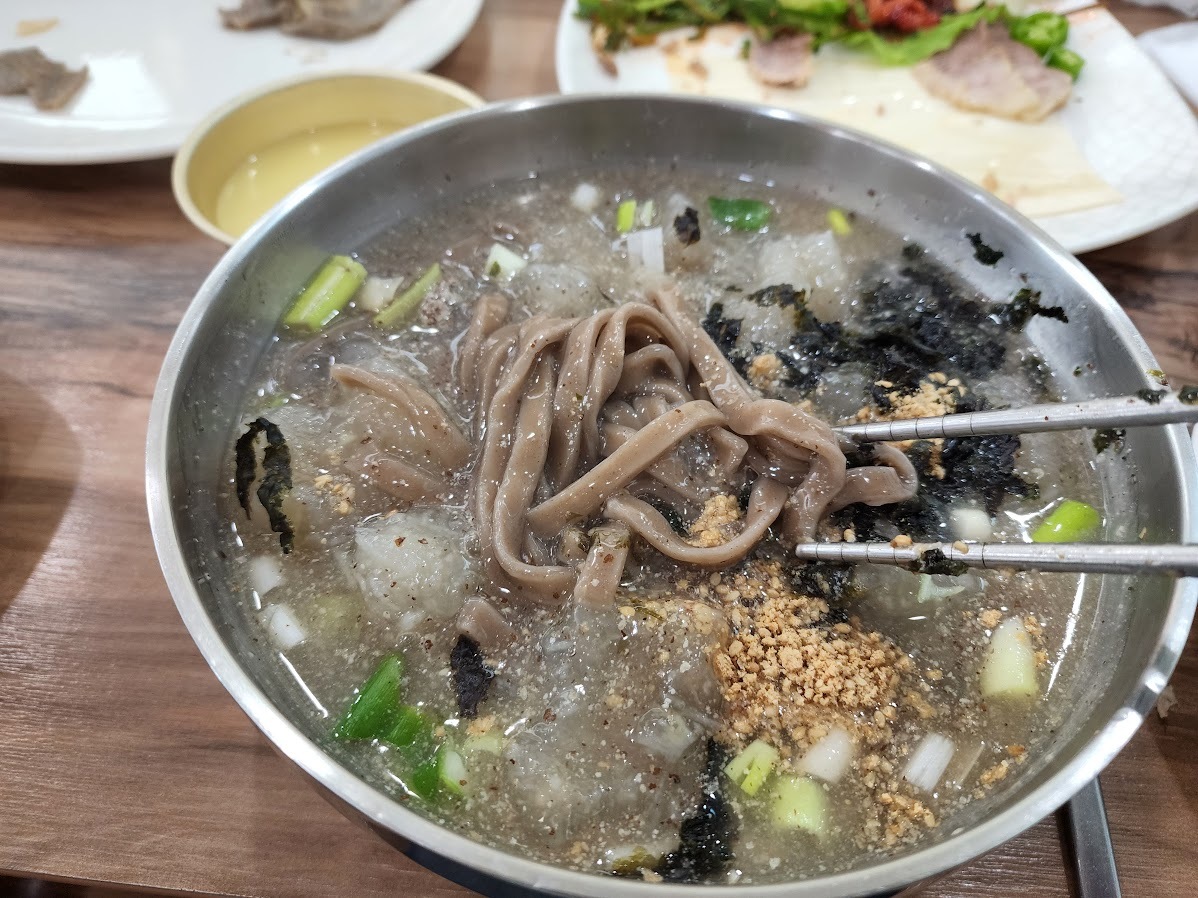 칼국수는 메밀이 들어있는지 메밀 색이 나네요.