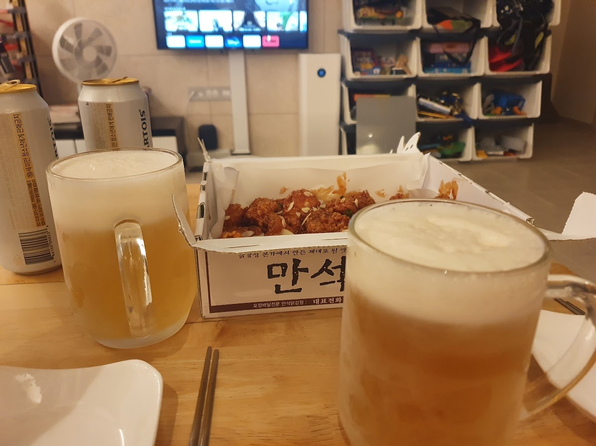 애들 재우고 오랜만에 신나는 매운 닭강정 파티를 하기로 했다.